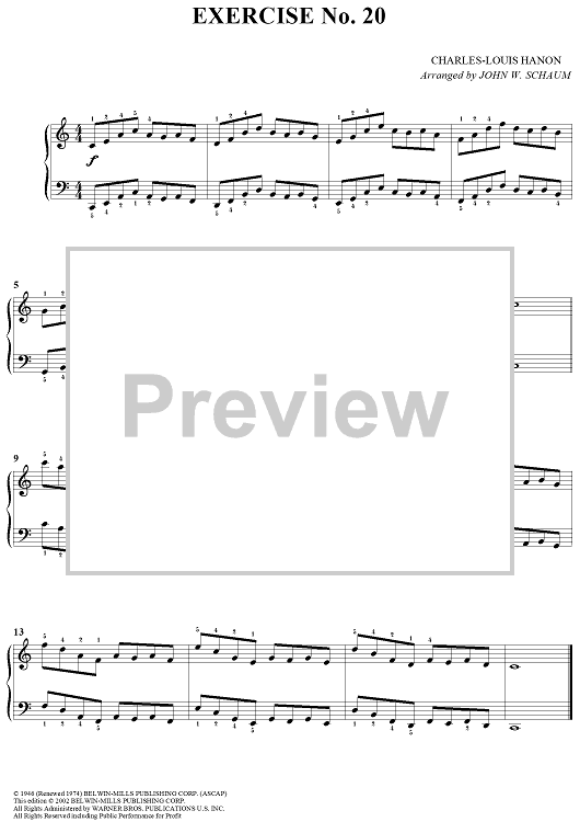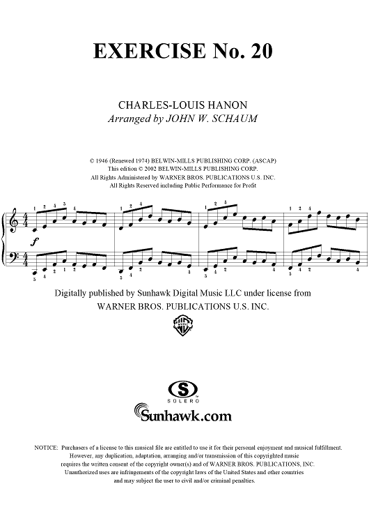 Digital Sheet Music for Exercise No. 20 by Charles-Louis Hanon, John W. Schaum scored for Piano Solo; id:287306