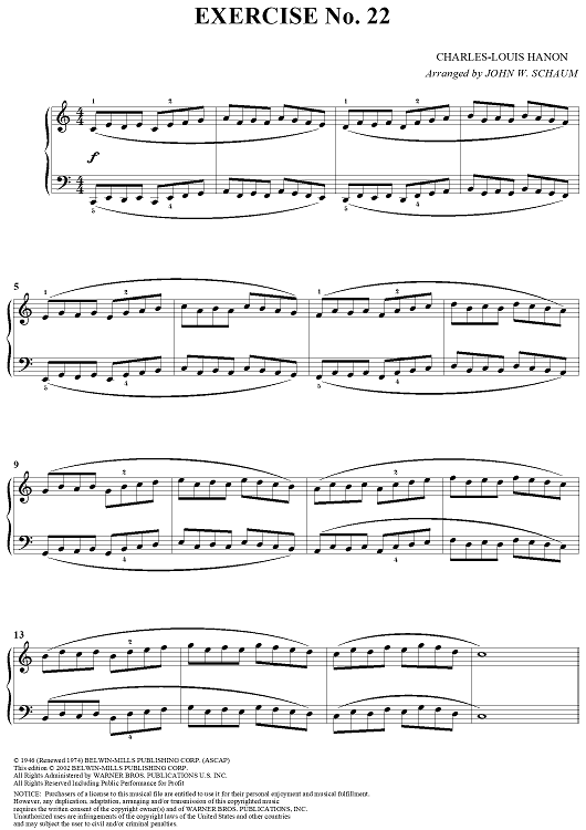 "Exercise No. 22" Sheet Music by Charles-Louis Hanon