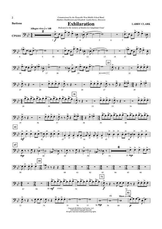 Digital Sheet Music for Exhilaration - Baritone (Bass Clef) by Larry Clark scored for Concert Band; id:406007