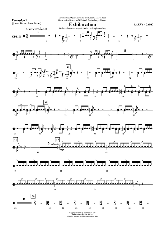 "Exhilaration - Percussion 1" Sheet Music by Larry Clark