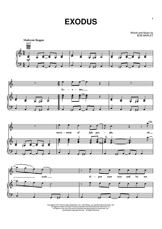 Digital Sheet Music for Exodus by Bob Marley scored for Piano/Vocal/Chords; id:370171