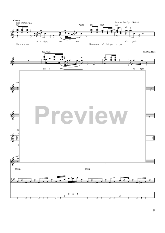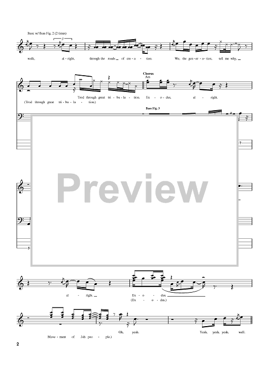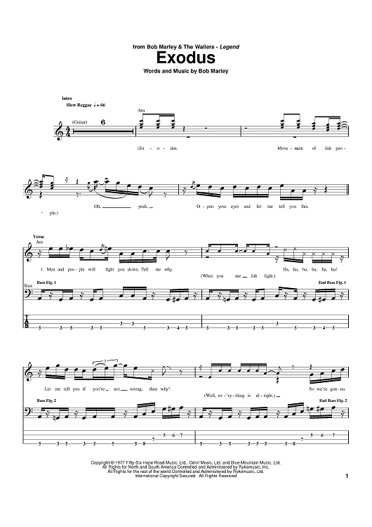 Digital Sheet Music for Exodus by Bob Marley scored for Bass Tab; id:371297