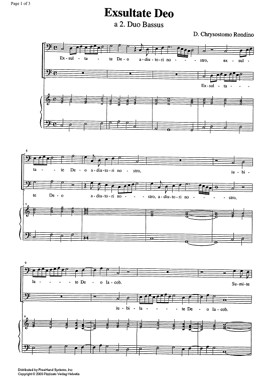 Digital Sheet Music for Exsultate Deo by , Crisostomo Rondini scored for 2 Basses/Continuo; id:351039