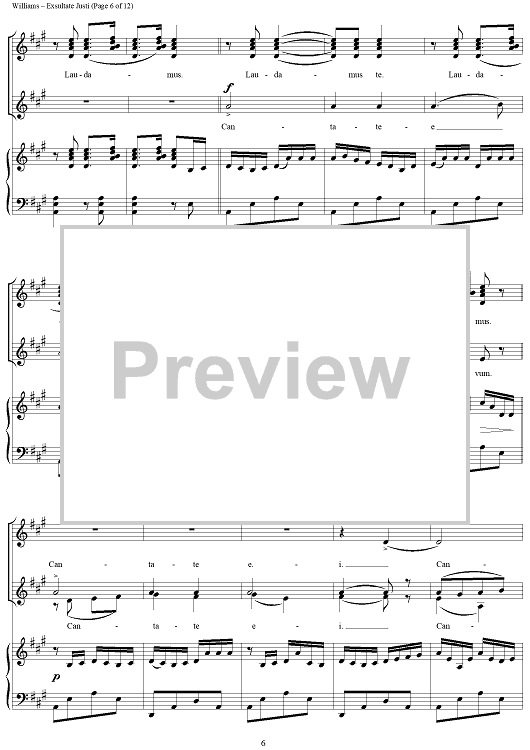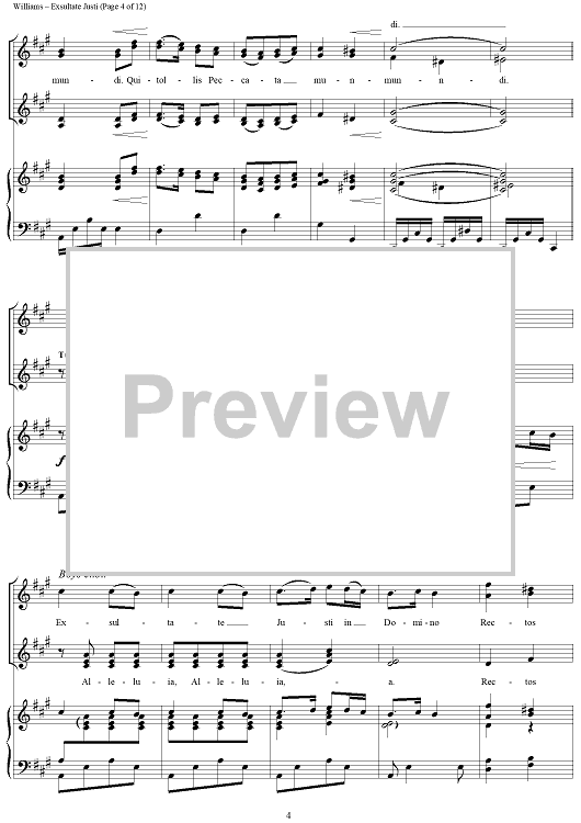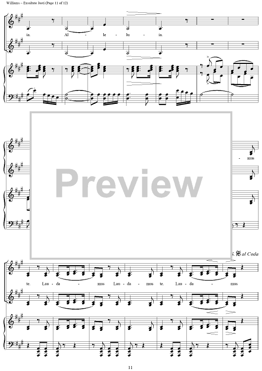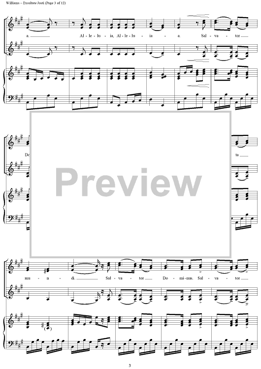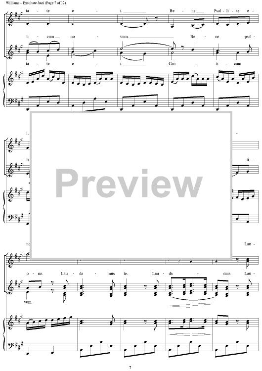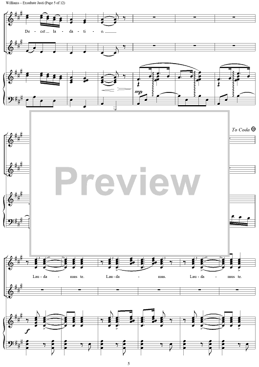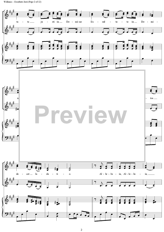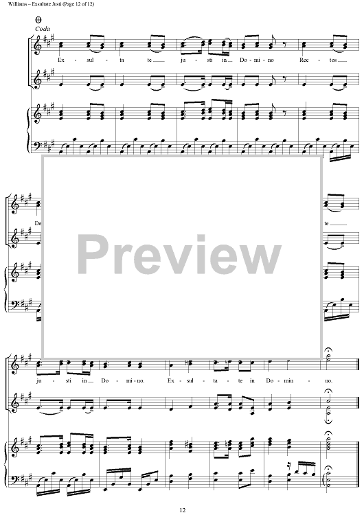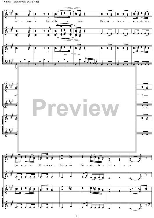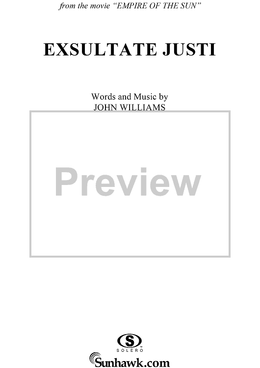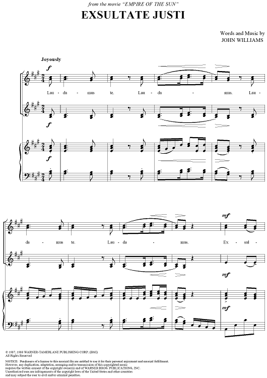 Digital Sheet Music for Exsultate Justi by John Williams scored for Four-part Mixed Chorus/Piano; id:263952