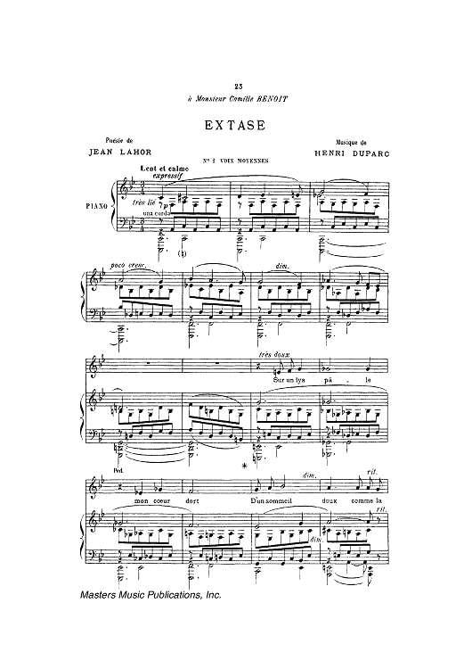 Digital Sheet Music for Extase by Henri Duparc, Jean Lahor scored for Piano/Vocal; id:444583