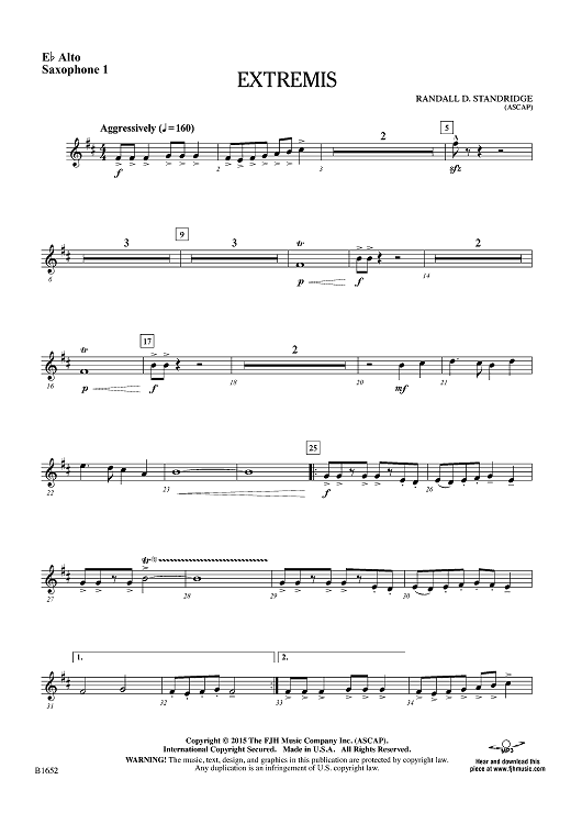 Digital Sheet Music for Extremis - Eb Alto Sax 1 by Randall D. Standridge scored for Concert Band; id:455445