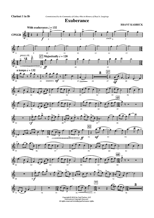 "Exuberance - Clarinet 1 in Bb" Sheet Music by Brant Karrick