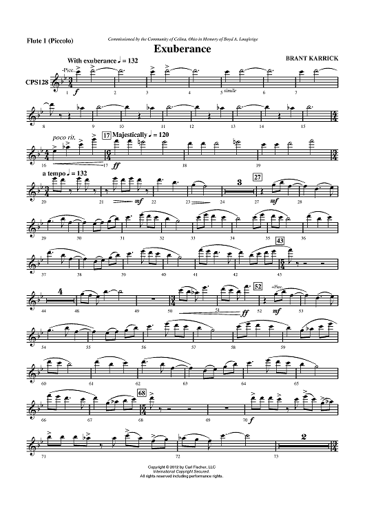 Digital Sheet Music for Exuberance - Flute 1 (Opt. Piccolo) by Brant Karrick scored for Concert Band; id:430624