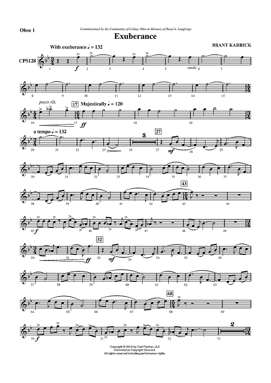 "Exuberance - Oboe 1" Sheet Music by Brant Karrick