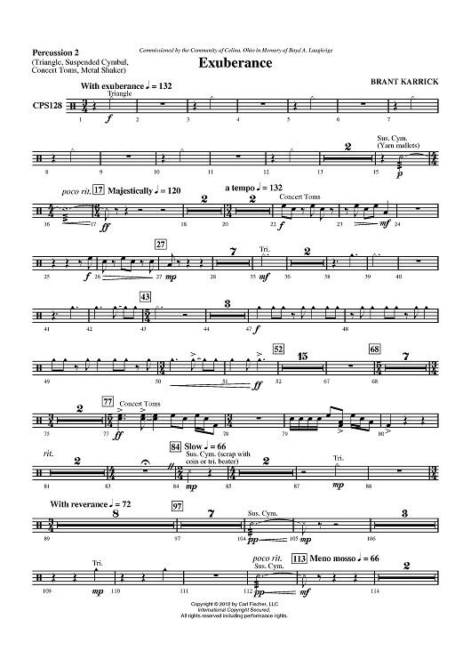 Digital Sheet Music for Exuberance - Percussion 2 by Brant Karrick scored for Concert Band; id:430654