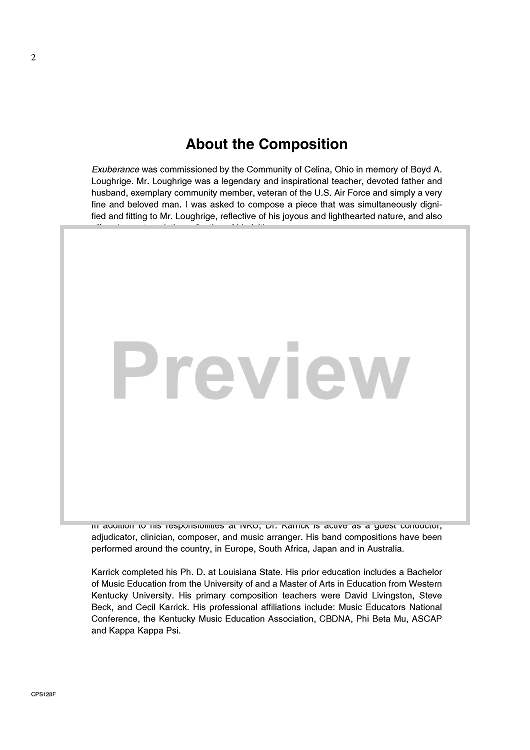 Digital Sheet Music for Exuberance - Score by Brant Karrick scored for Concert Band; id:430623
