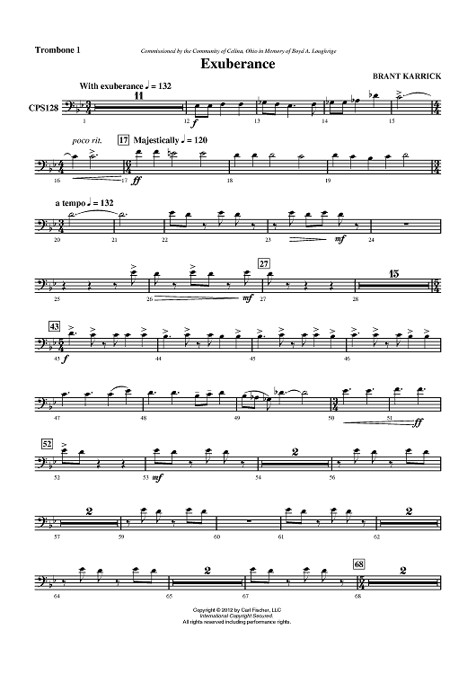 "Exuberance - Trombone 1" Sheet Music by Brant Karrick