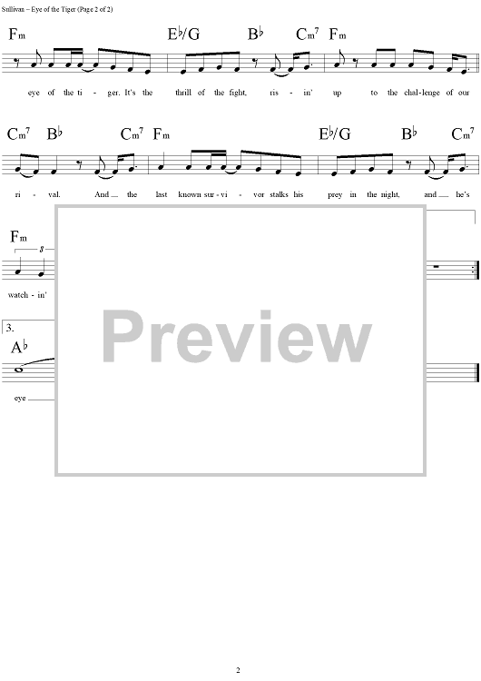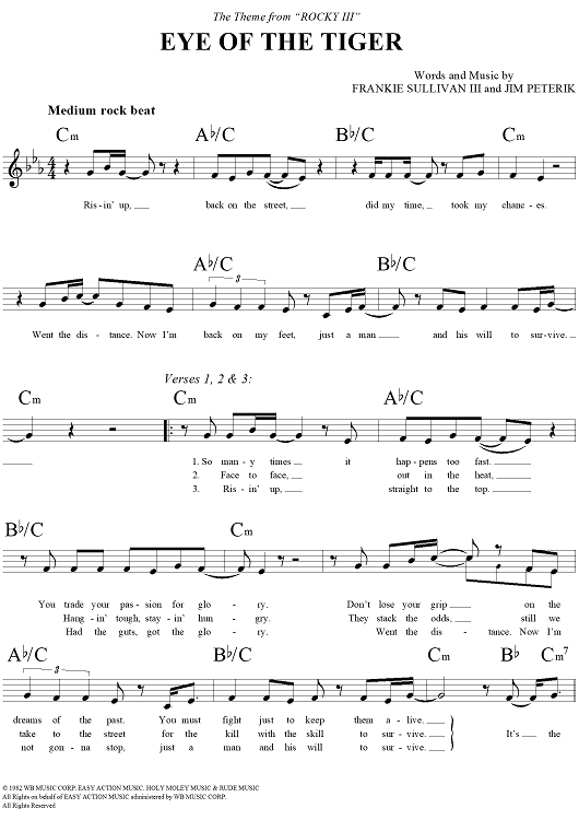 Digital Sheet Music for Eye of the Tiger by Jim Peterik, Survivor, Frankie Sullivan III scored for Lead Sheet; id:219096