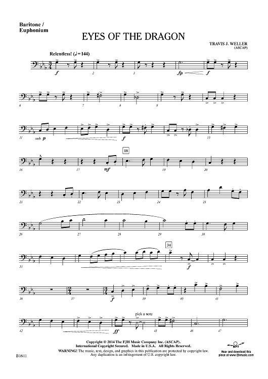 Digital Sheet Music for Eyes of the Dragon - Baritone/Euphonium by Travis J. Weller scored for Concert Band; id:447873