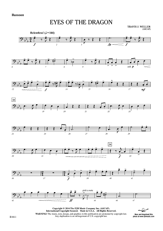 Digital Sheet Music for Eyes of the Dragon - Bassoon by Travis J. Weller scored for Concert Band; id:447861