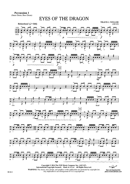 "Eyes of the Dragon - Percussion 1" Sheet Music by Travis J. Weller
