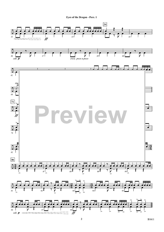 Digital Sheet Music for Eyes of the Dragon - Percussion 1 by Travis J. Weller scored for Concert Band; id:447878