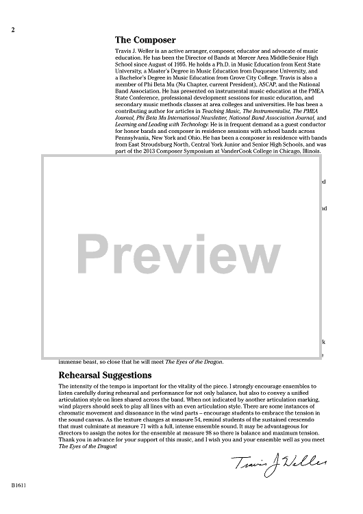 Digital Sheet Music for Eyes of the Dragon - Score Cover by Travis J. Weller scored for Concert Band; id:447858
