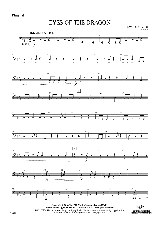 Digital Sheet Music for Eyes of the Dragon - Timpani by Travis J. Weller scored for Concert Band; id:447876