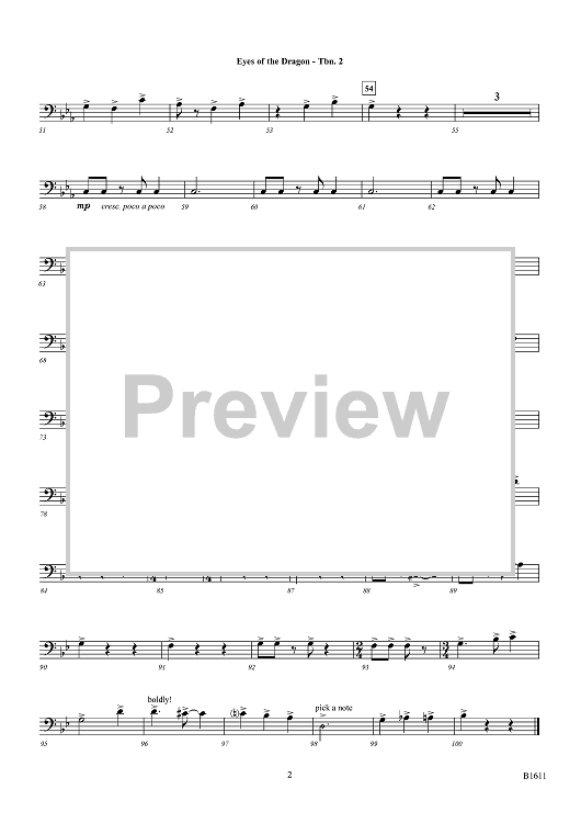 Digital Sheet Music for Eyes of the Dragon - Trombone 2 by Travis J. Weller scored for Concert Band; id:447872