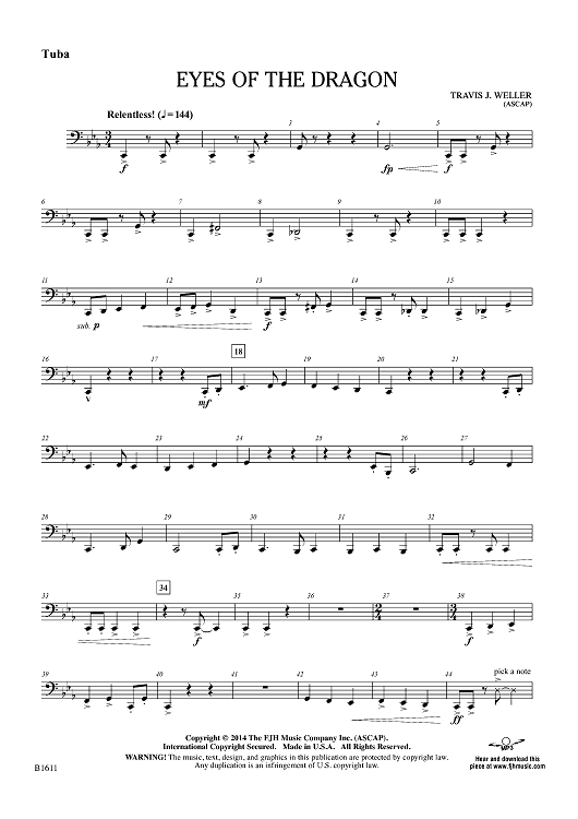 Digital Sheet Music for Eyes of the Dragon - Tuba by Travis J. Weller scored for Concert Band; id:447875