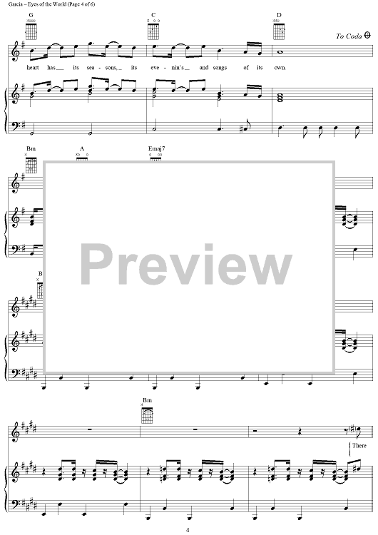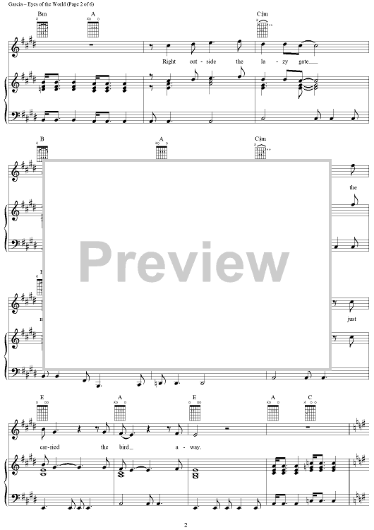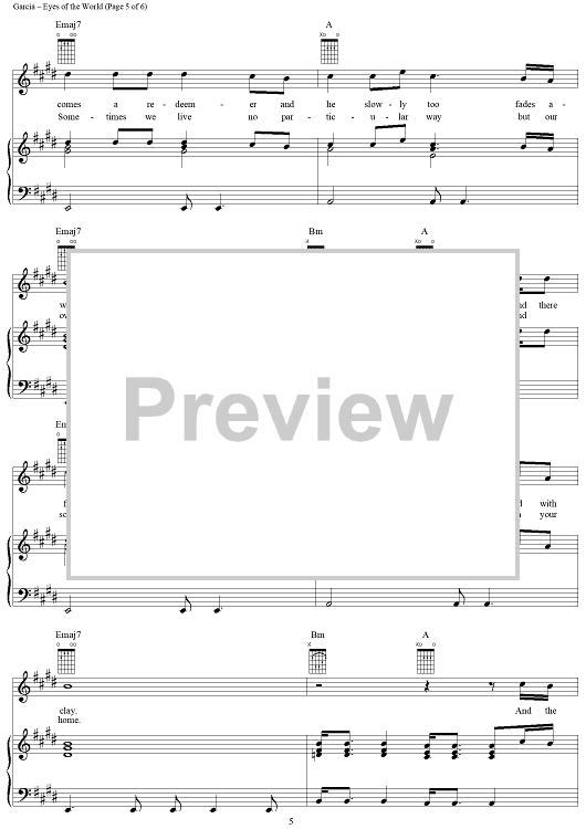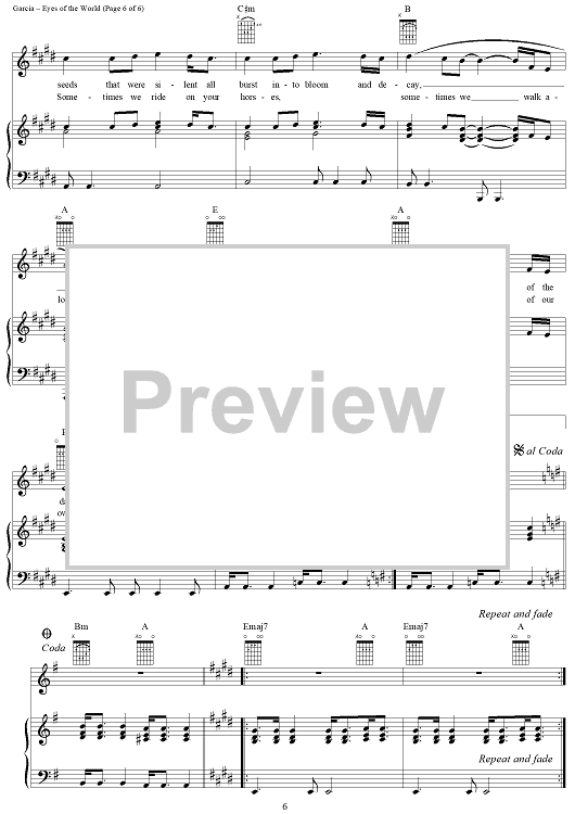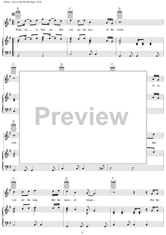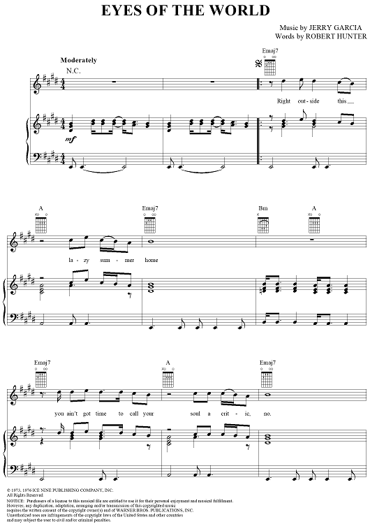 Digital Sheet Music for Eyes of the World by Jerry Garcia, Robert Hunter, Grateful Dead scored for Piano/Vocal/Chords; id:189365