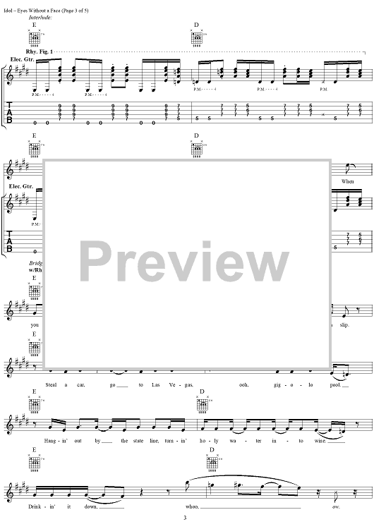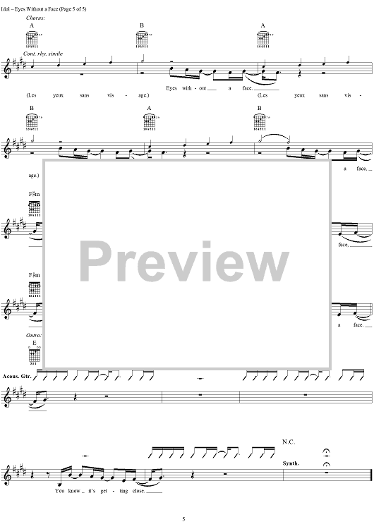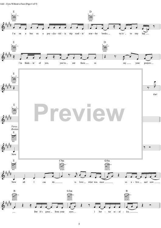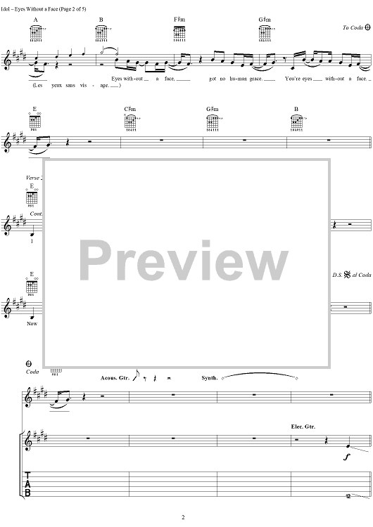 "Eyes Without A Face" Sheet Music by Billy Idol