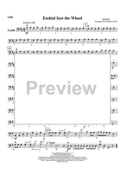 Digital Sheet Music for Ezekiel Saw The Wheel - Cello by Spiritual, Virginia Croft scored for Orchestra; id:406837