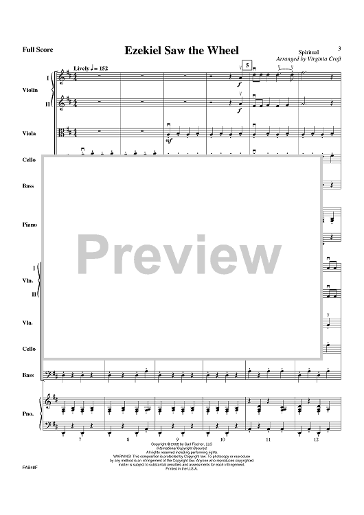 Digital Sheet Music for Ezekiel Saw The Wheel - Score by Spiritual, Virginia Croft scored for Orchestra; id:406832