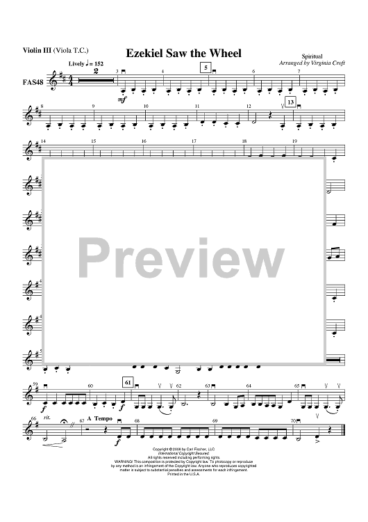 Digital Sheet Music for Ezekiel Saw The Wheel - Violin 3/Viola by Spiritual, Virginia Croft scored for Orchestra; id:406835
