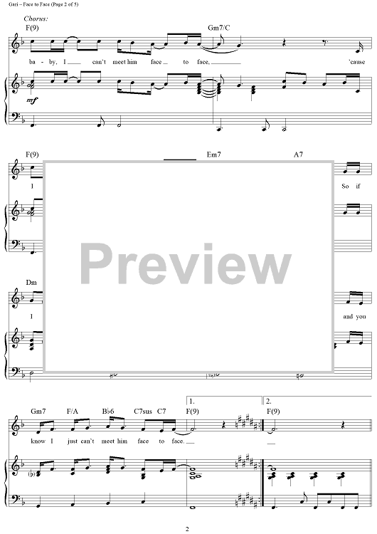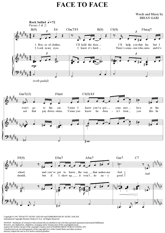 Digital Sheet Music for Face to Face by Brian Gari scored for Piano/Vocal/Chords; id:355047
