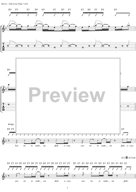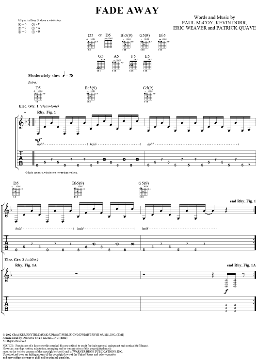 Digital Sheet Music for Fade Away by 12 Stones, Paul McCoy, Kevin Dorr, Eric Weaver, Patrick Quave scored for Guitar Tab/Vocal; id:304414