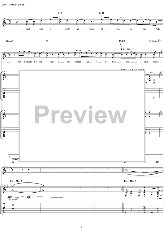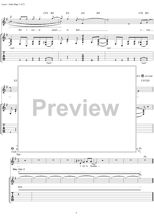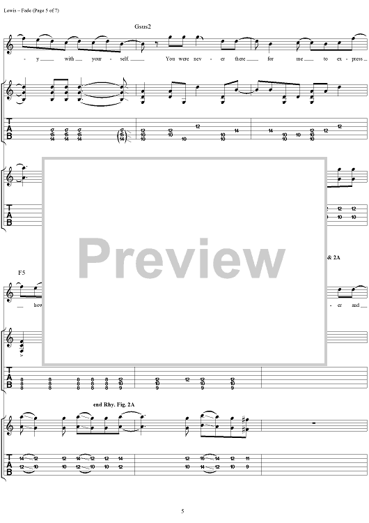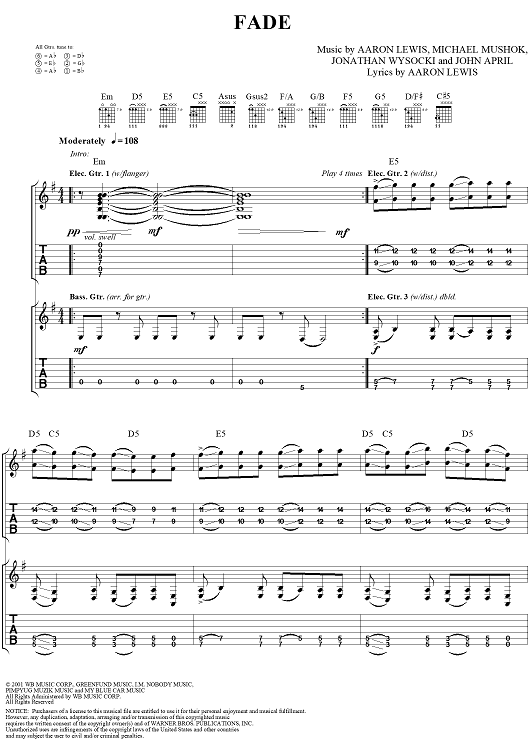Digital Sheet Music for Fade by Aaron Lewis, Michael Mushok, Jonathan Wysocki, John April, Staind scored for Guitar Tab/Vocal; id:284915