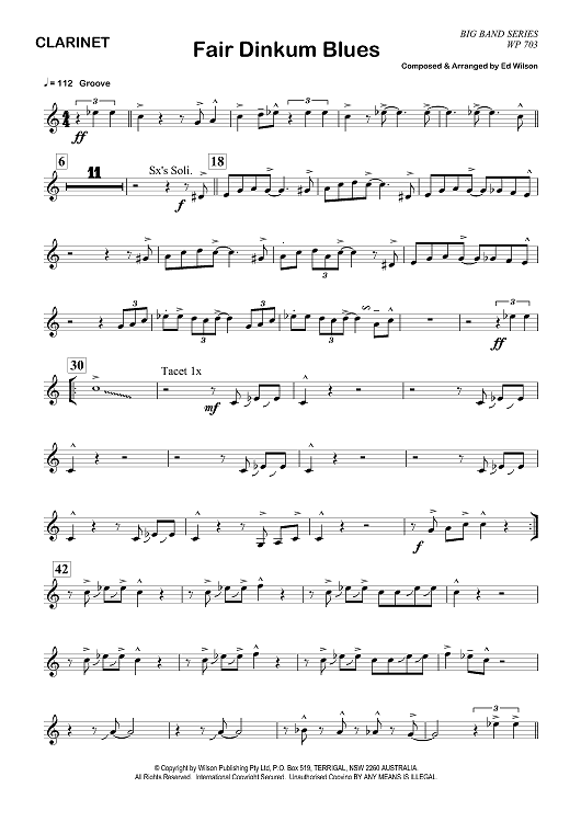 Digital Sheet Music for Fair Dinkum Blues - Clarinet by Ed Wilson scored for Jazz Ensemble; id:356645