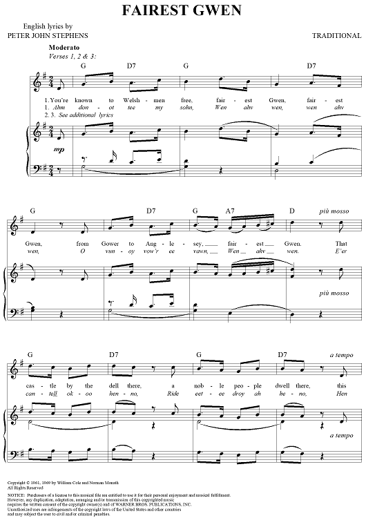 Digital Sheet Music for Fairest Gwen by Norman Monath, Traditional scored for Piano/Vocal/Chords; id:260884