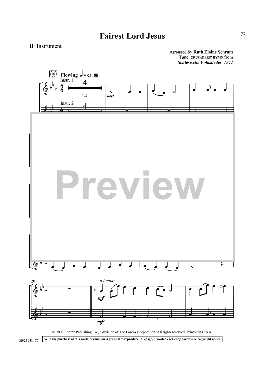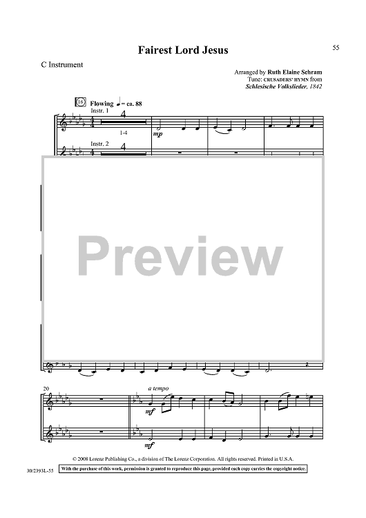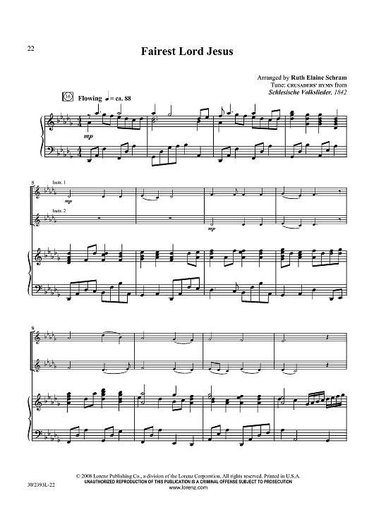Digital Sheet Music for Fairest Lord Jesus by Ruth Elaine Schram, Schlesische Volkslieder scored for Keyboard, C Instrument, Bb Instrument; id:433441