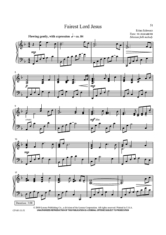 Digital Sheet Music for Fairest Lord Jesus by Silesian Folk Song, Erinn Schwarz scored for Piano Solo; id:434056