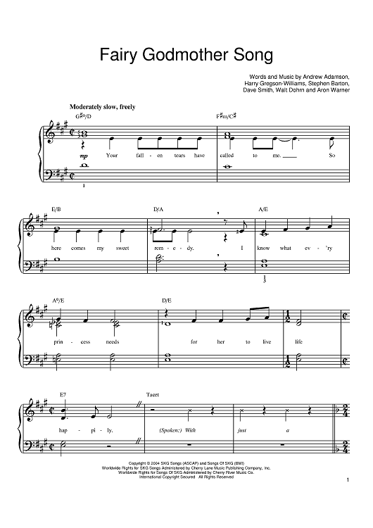 Digital Sheet Music for Fairy Godmother Song by Walt Dohrn, Harry Gregson-Williams, Andrew Adamson, Stephen Barton, Jennifer Saunders, Dave Smith, Aron Warner scored for Easy Piano; id:379409
