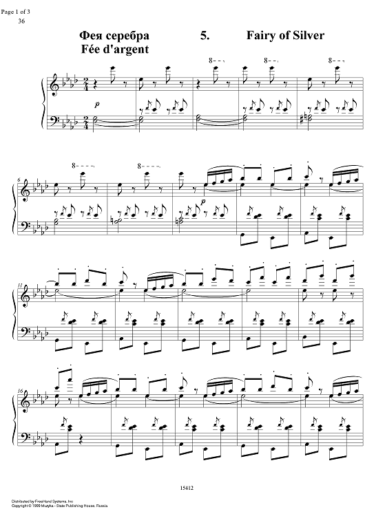 Digital Sheet Music for Fairy of Silver by , Mikhail Pletnev, Peter Ilyich Tchaikovsky scored for Piano Solo; id:337021