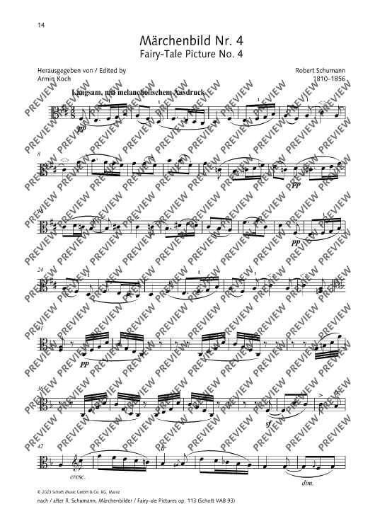 Digital Sheet Music for Fairy-Tale Picture No. 4 by Robert Schumann scored for Viola And Piano; id:499979