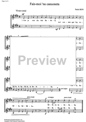 Digital Sheet Music for Fais-moi 'na cansoneta - Score by Paolo Bon scored for Choir; id:349535