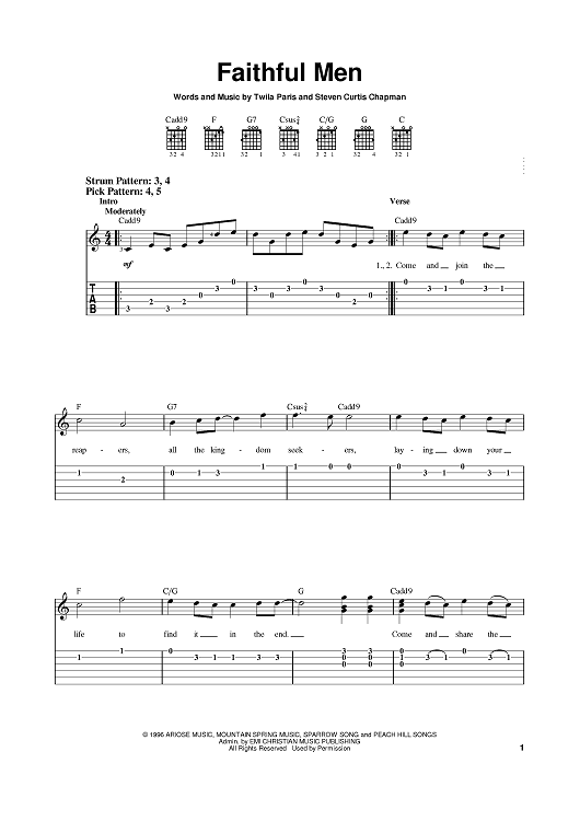 Digital Sheet Music for Faithful Men by Twila Paris scored for Easy Guitar; id:372567