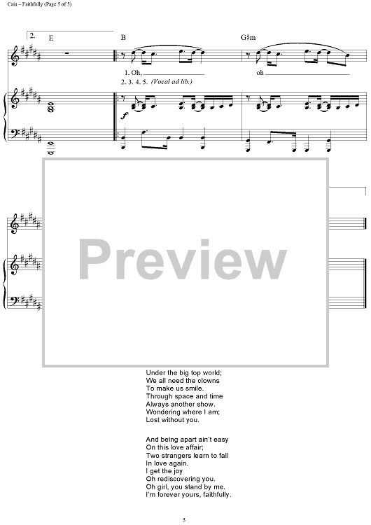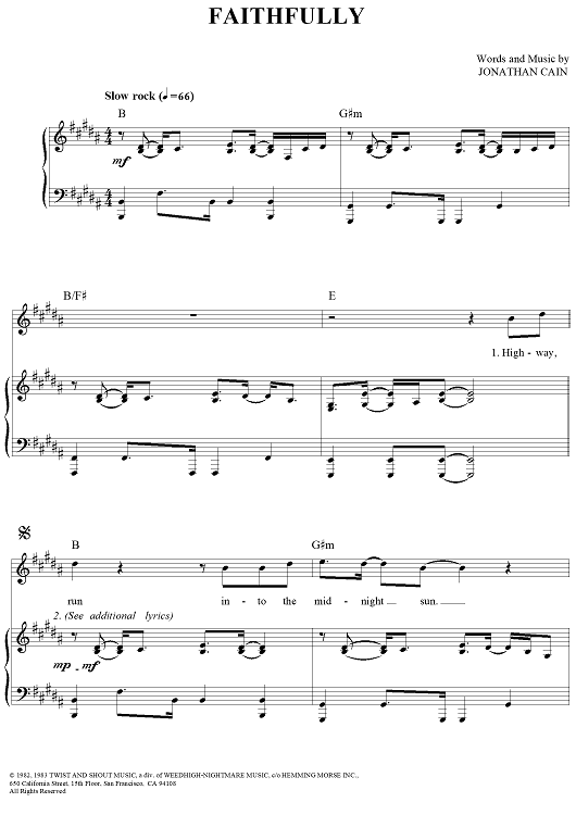 Digital Sheet Music for Faithfully by Jonathan Cain, Journey scored for Piano/Vocal/Chords; id:272821