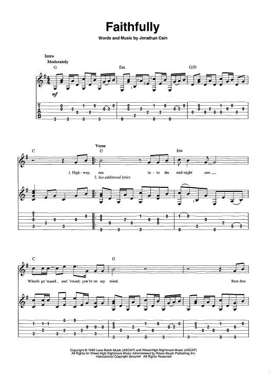 Digital Sheet Music for Faithfully by Jonathan Cain scored for Guitar Tab/Vocal/Chords; id:442865