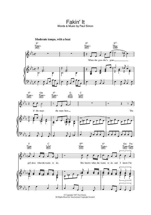 Digital Sheet Music for Fakin' It by Paul Simon, Simon & Garfunkel scored for Piano/Vocal/Chords; id:390629