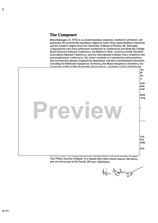Digital Sheet Music for Falcon Fanfare - Score Cover by Brian Balmages scored for Concert Band; id:440692