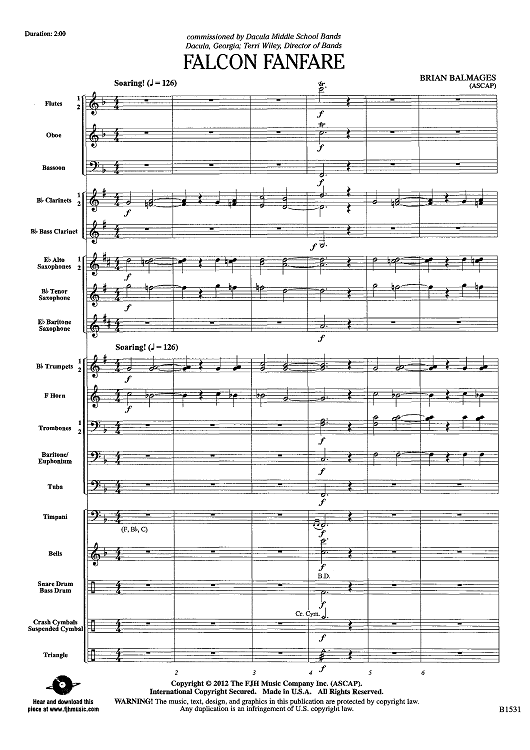 Digital Sheet Music for Falcon Fanfare - Score by Brian Balmages scored for Concert Band; id:440691