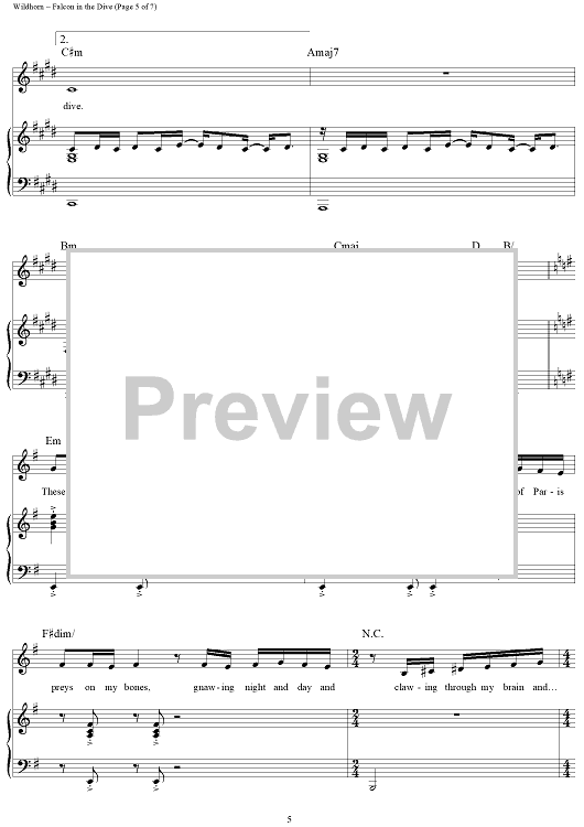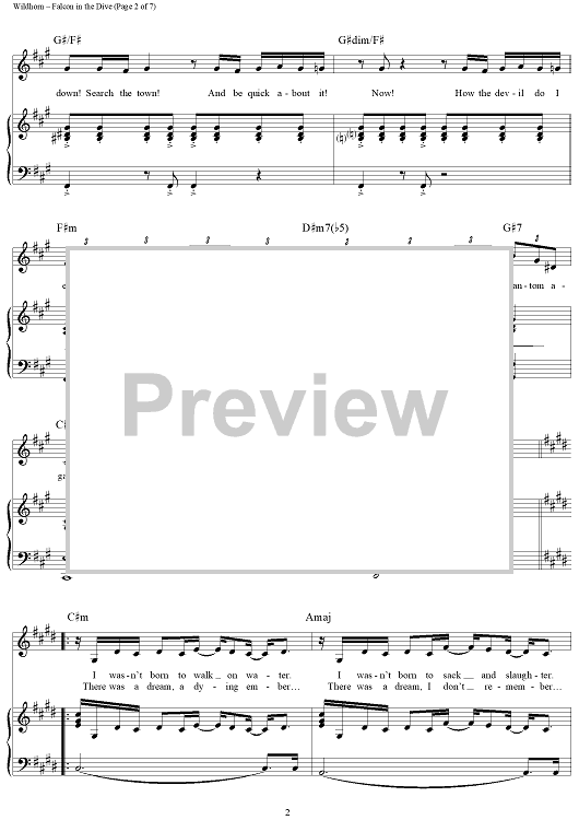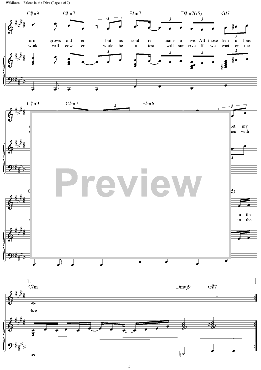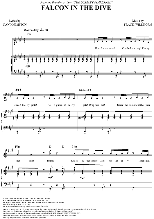 Digital Sheet Music for Falcon in the Dive by Frank Wildhorn, Nan Knighton scored for Piano/Vocal/Chords; id:236527