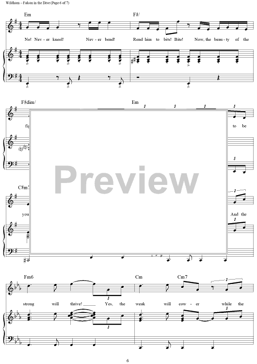 "Falcon in the Dive" Sheet Music by Frank Wildhorn