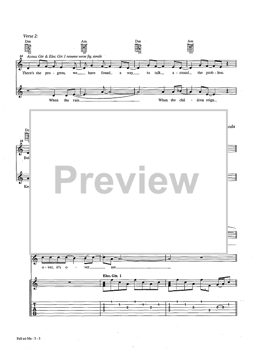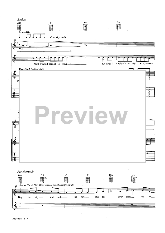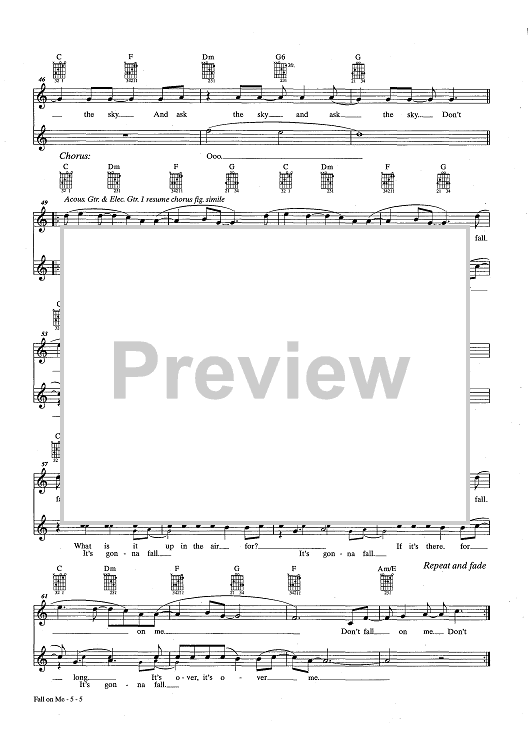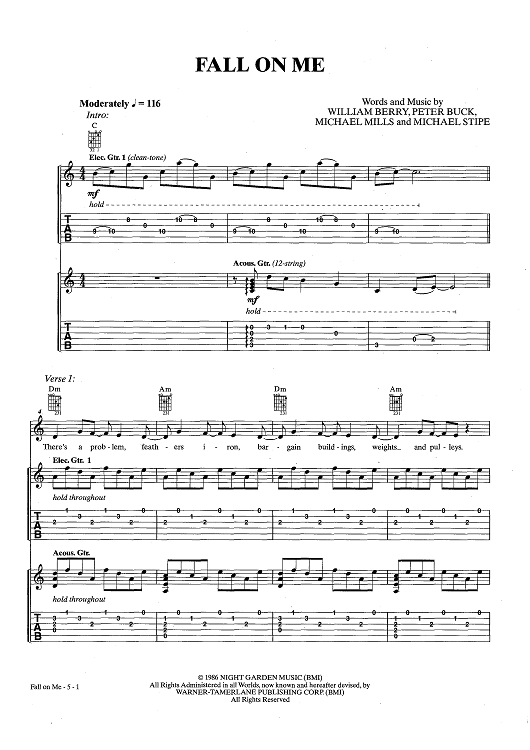 Digital Sheet Music for Fall On Me by R.E.M., Michael Stipe, Peter Buck, Mike Mills, Bill Berry scored for Guitar Tab/Vocal/Chords; id:436626